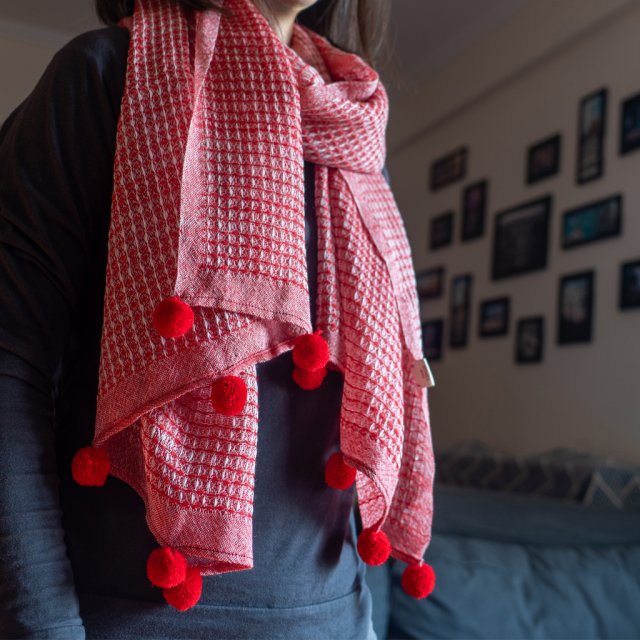 印度紅格仔手紡頸巾