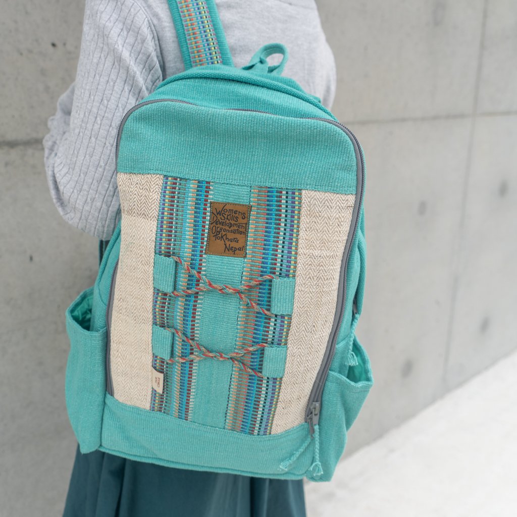 尼泊爾拉鏈背包米白色布,採用尼泊爾高山生長的天然麻 Allo,與棉花人手混織而成,淺色系更採用對環境友善的植物染。種植及編織 Allo,能夠協助偏遠山區的婦女改善生活。